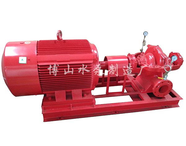 1、水平中開雙吸消防泵的吸入和吐出管均在水泵軸心線的下方,呈水平方向,與軸線呈垂直位置。泵蓋用螺栓與定位銷固定在泵體上,無需拆卸管路及原動(dòng)機(jī)就可以檢修泵的轉(zhuǎn)子部件。
